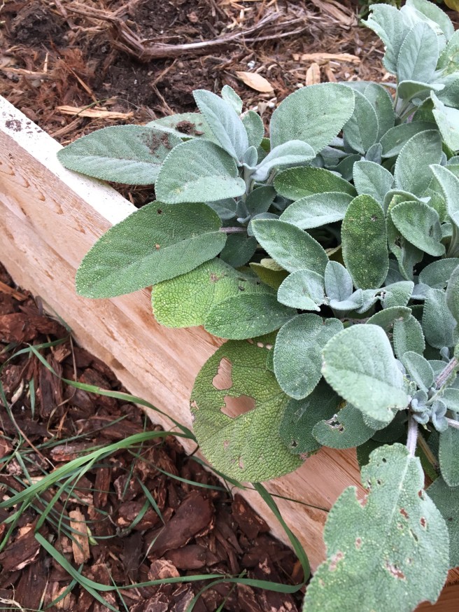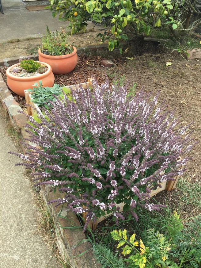 Speaking of perennials- I really have to cut back the African blue basil. It’s just too wild, and I’m sure it’s hiding some nasty bugs. But it’s attracting so many bees…