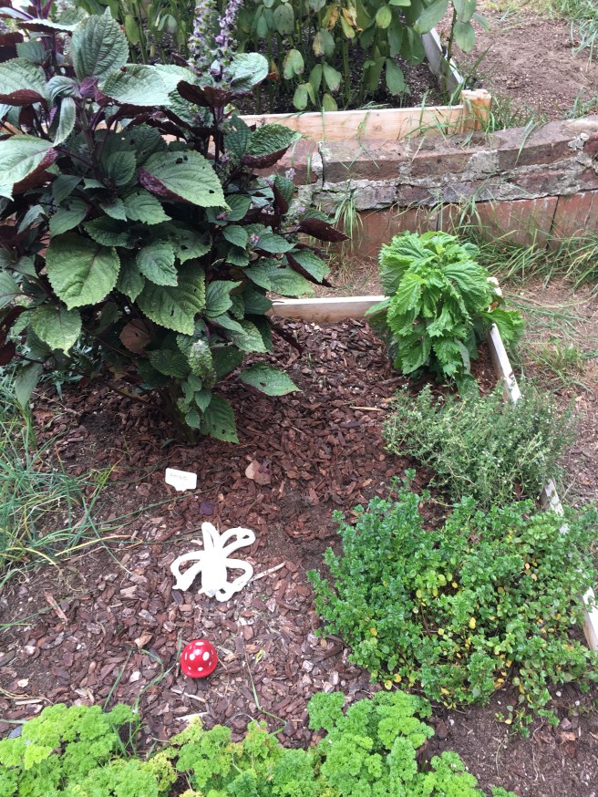 But I also pulled the bug eaten lovage plant and trimmed the caterpillar nibbled leaves of the shiso and sage plants.