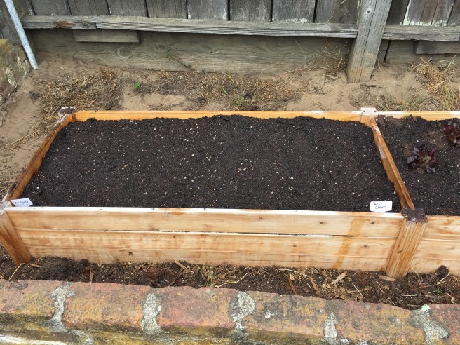 I also sowed the neighboring bed with seeds. Arugula and Swiss chard seeds, which I will thin as needed later.