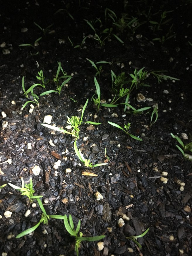 The carrots in the carrot bed are starting to sprout, and encouraging sign of fresh life in the garden.