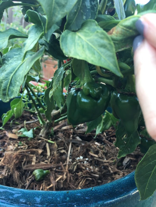 Besides the great smushing that killed one plant and led to the emergency transplant of the surviving Hatch pepper- the pepper plants have been doing great.