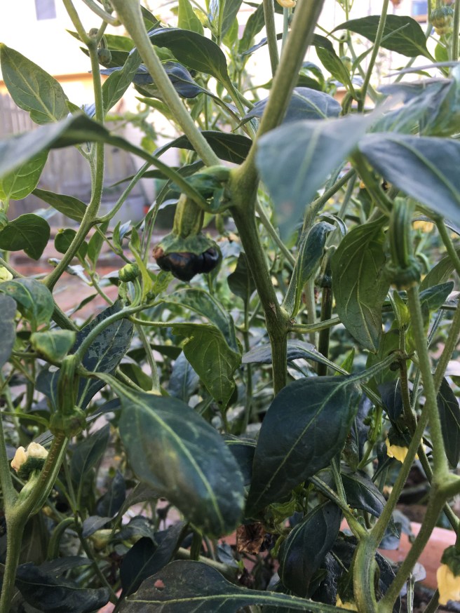 The hatch pepper might not even be a hatch pepper, they’re all too small- but that plus the early ripening of some small ones makes me think it *is* a hatch, but the emergency transplant might have damaged the plant somehow.