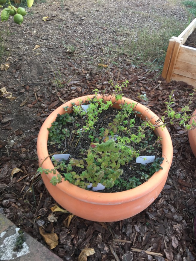 The weird warm weather is causing the basil to sprout flowers again, along with the hyssop. That’s another job for tomorrow- going to have to clip all the flowers so the leaves don’t get bitter.