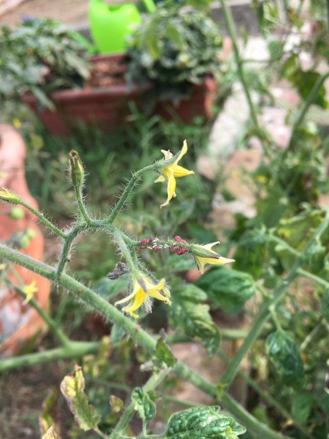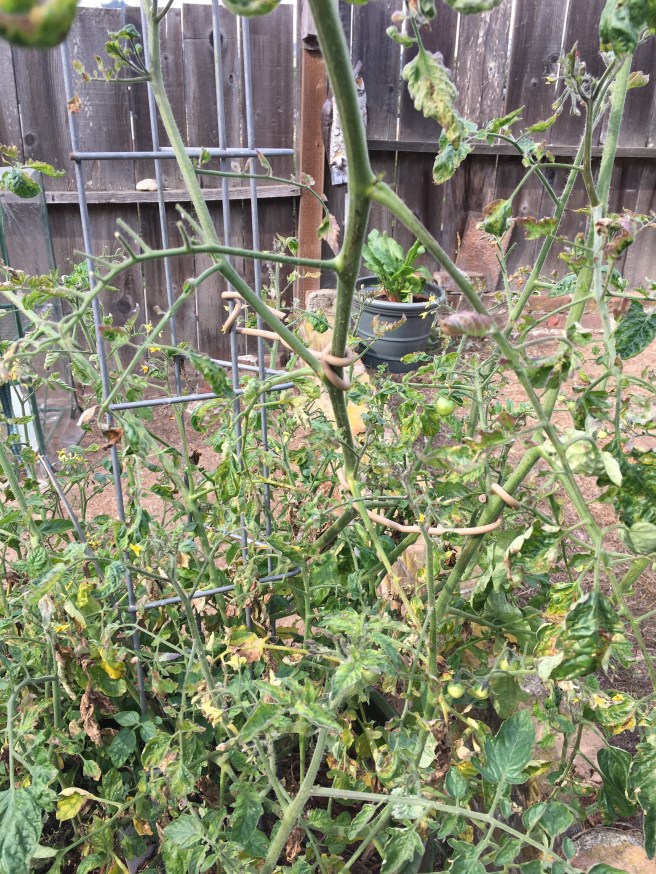 I’ve also had to tie up the plant better- as the small tomato cage was just totally inadequate for its new bulk.