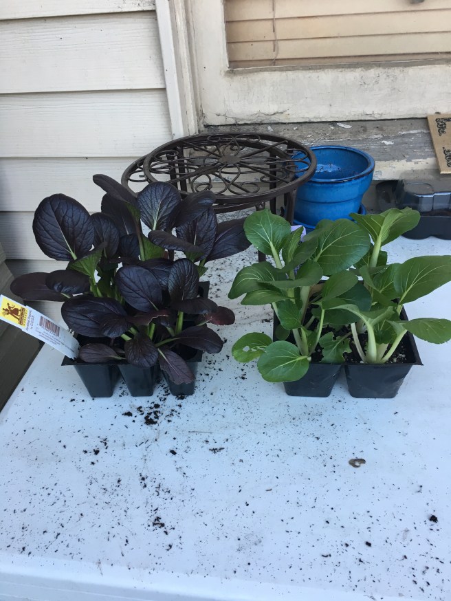 These are the Pac Choi I’m putting in, the green one is the “Joy” cultivar and the purple one is the “Rosy” cultivar.