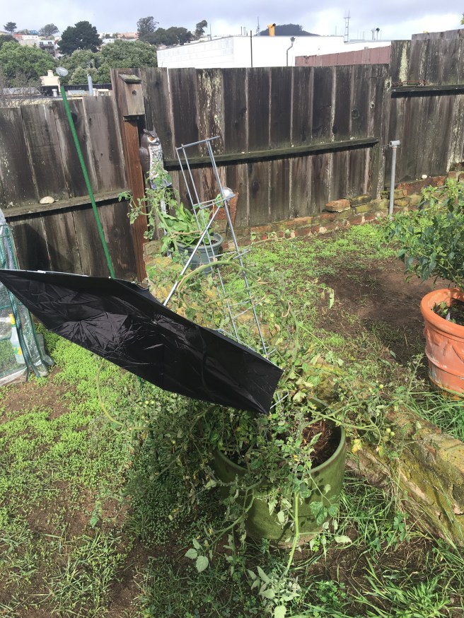 Not sure if I’m going to tie it up again next rain, don’t want to kill the plant via flying wind driven umbrella.