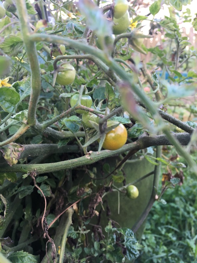 So I was resigned. Resigned to the fact that my many green sun gold tomatoes would never ripen. It’s ok! I thought to myself- I’ll just pick them all and fry them up! Fried green cherry tomatoes will be tasty right?