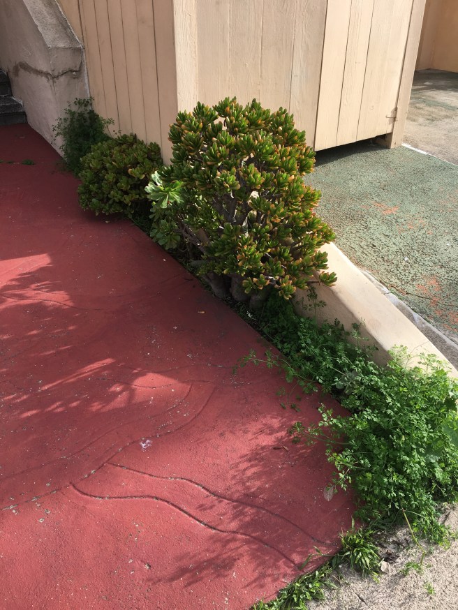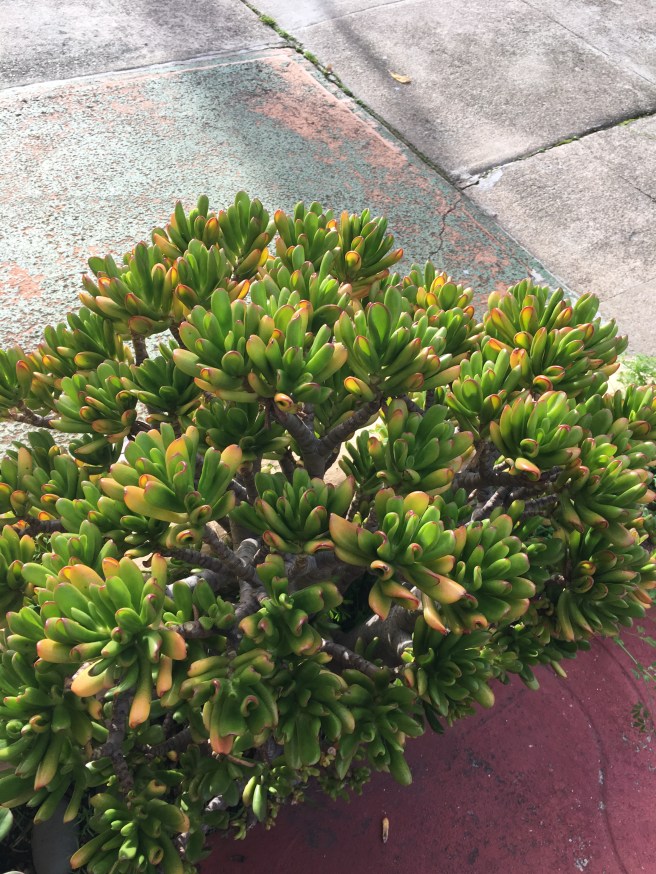 It’s all very green though, which on the one hand is nice as it plays off the red painted concrete. But I did hope for more color and around the time I started this blog after my last surgeries (or perhaps a little before) I put in a few other cheap but colorful succulents to see if any would grow big and balance out the more established fellows.