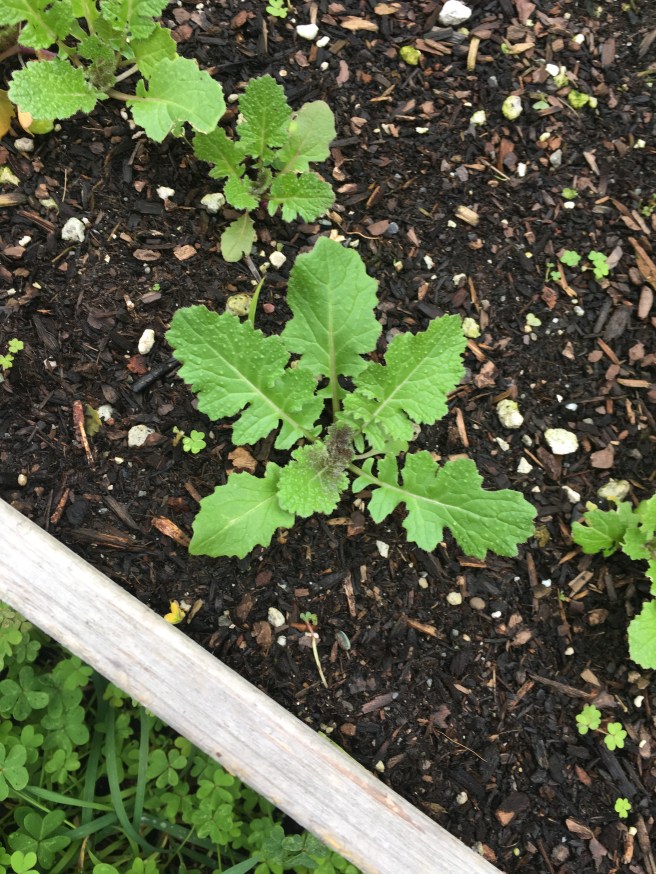The turnips are super pretty though. A few days ago I put a few more turnip seeds in the gaps, for maximum turnip. The peas never sprouted behind them. Which is ok at this point, since as soon as we have a warm spell I’m putting in the first of my pole beans.