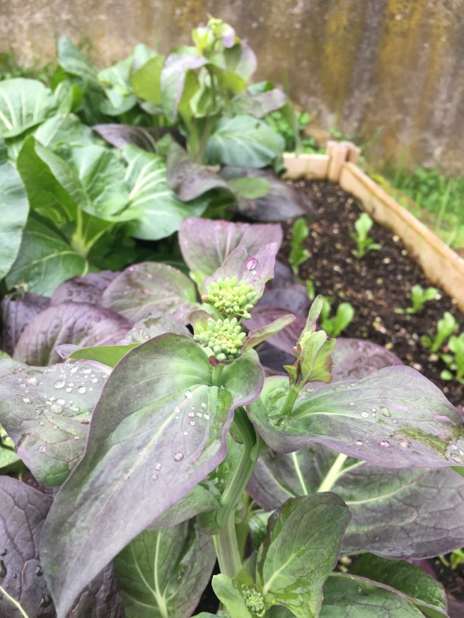 First things first- the weird purple Rosy Bok Choy is… being a weirdo.