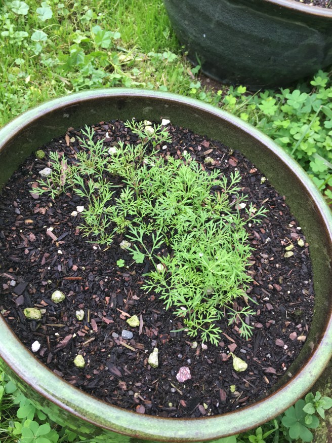 That’s some cat prints in my arugula pot. Since there was no cat poop in the arugula pot- I don’t care if a local kitty decided to patrol. Keeps the rodents down. But there were more exciting activities in this pot: