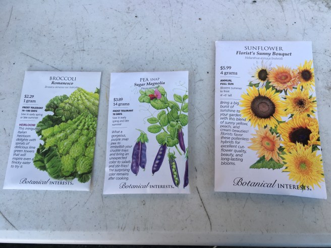 I’ve been thinking of putting in sunflowers for a while, mom tends to not be allergic to those and I’d like some color in the garden. What’s really nice about the packet I chose is they’re a pollen-less hybrid meant for florists. I don’t care too much about the need of florists, but no pollen means no sick mother! And while there’s no pollen there is nectar so the pollinators will be happy.