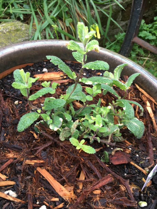Squarely in the “loving it” category are both my new potted mints. I was worried about transplant shock but they clearly weren’t. New growth already and they smell fantastic. If only all my plants were as water loving as mint.