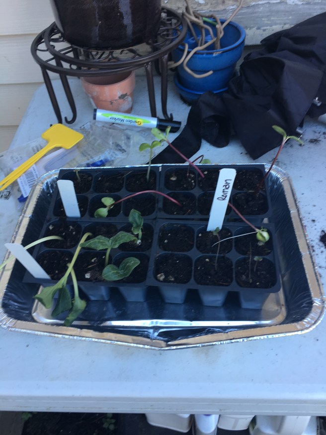 I took the opportunity to move the indoor seedlings outside- and to plant some more.