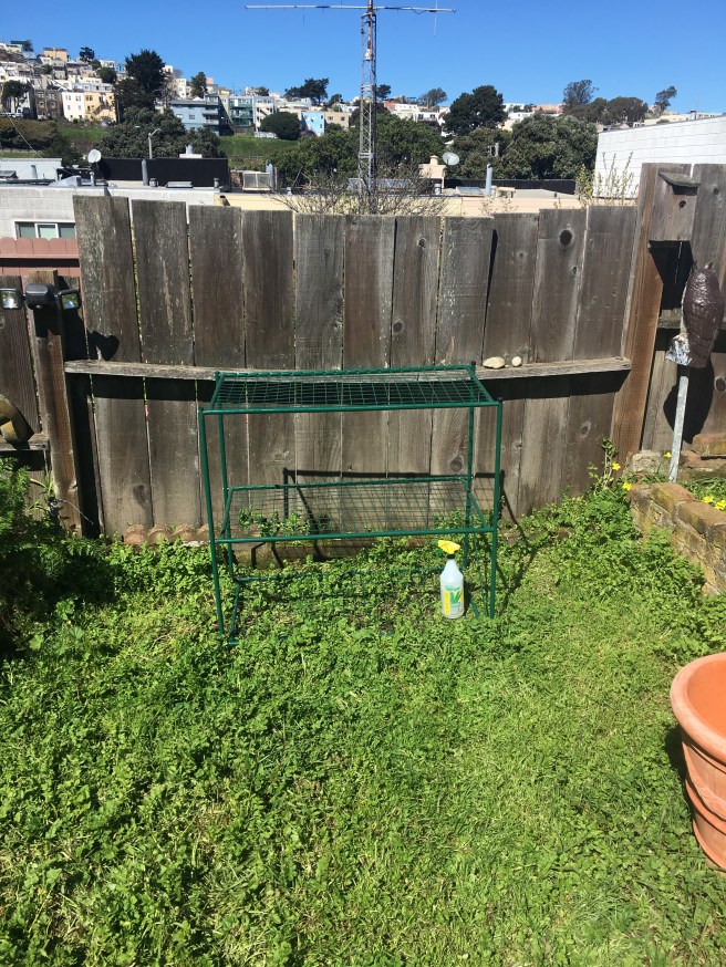I am slightly concerned about wind knocking things over- so I put a bunch of rocks inside the drip trays to try and weigh things down. That also could fail. We’ll see.