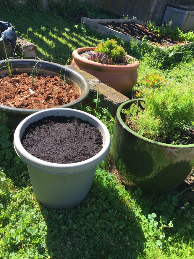 Ok so I’ll sow it by seed into a pot like I did with the dill, only the only pot the right size is the plastic pot that we all know the wind likes to knock over…