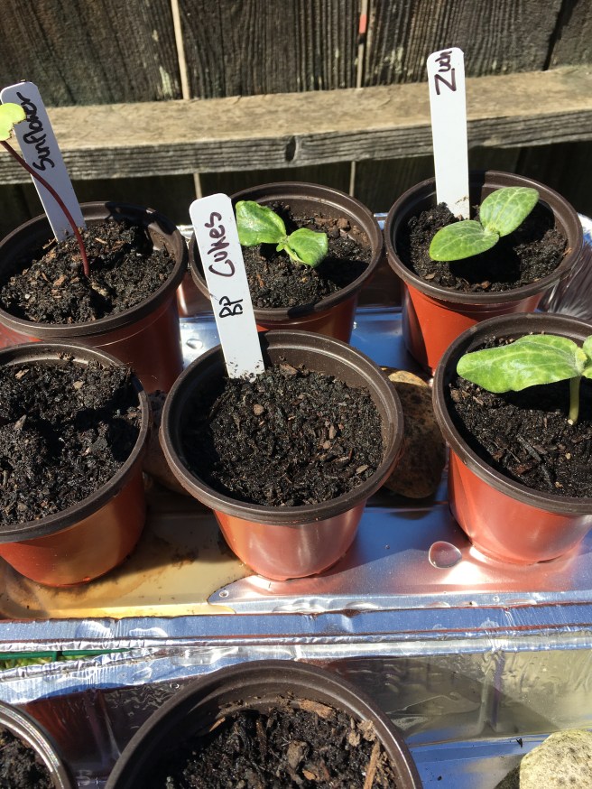 I’ve also been pretty pleased with the seedlings so far, except for the one Boston pickle I started indoors during the deluge- it died in the night. I just sort of shrugged and put another Boston pickle cucumber seed in the pot- you can’t really plant cucumbers in their bed til around May so I have plenty of time to screw around with seeds and grow a few strong plants for transplant.