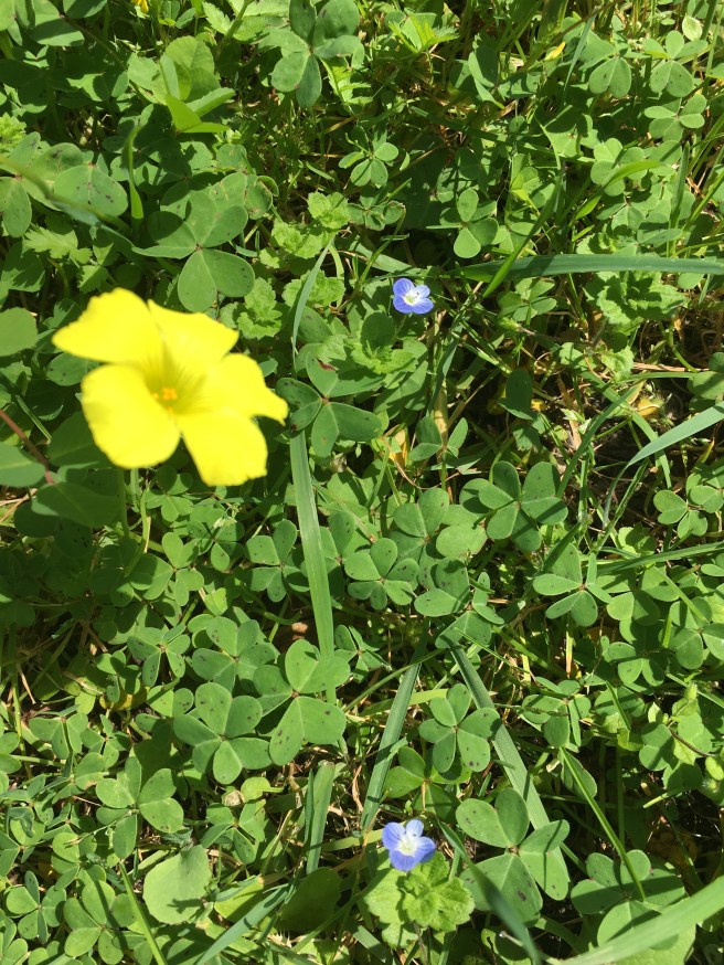 There are those awful oxalis of course, but also those little blue flowers that look like forget-me-nots speckled throughout the garden.