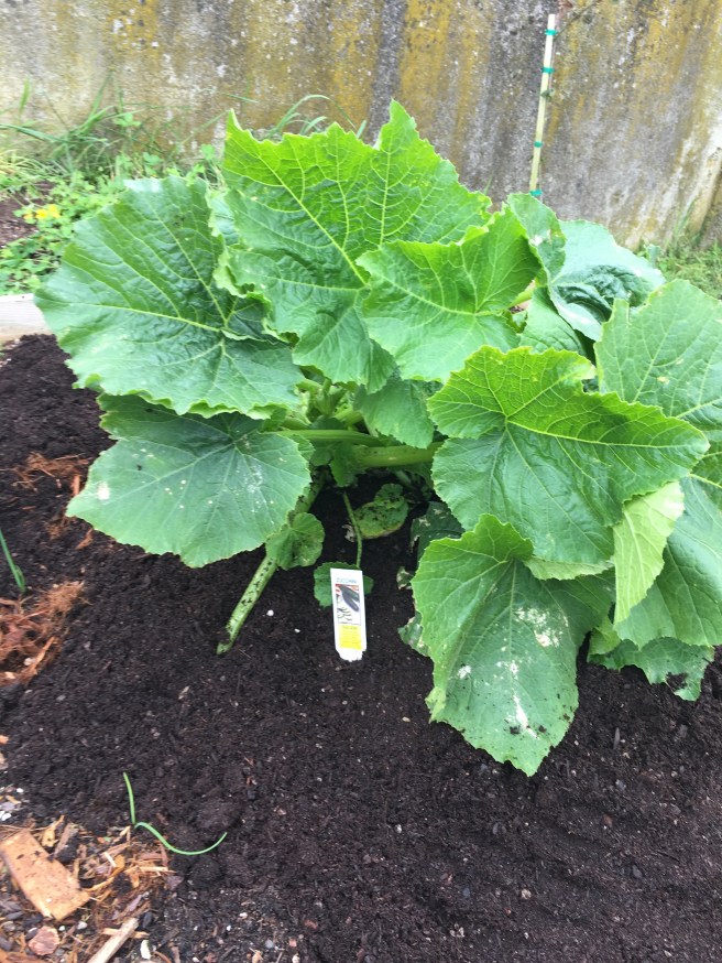 Mount squash. It’s gonna be real interesting to see how good a neighbor the zucchini monster is going to be to the romaine lettuce and the green onions. Not so worried about the scallions mind, as long as they have some vertical room they’ll grow. Hope the romaine don’t get squashed.
