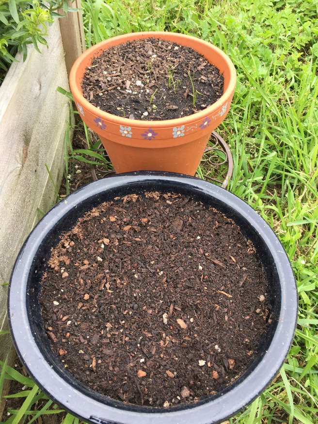 In other seed news, the regular chives are coming up- but the garlic chives are not, so I resowed them.