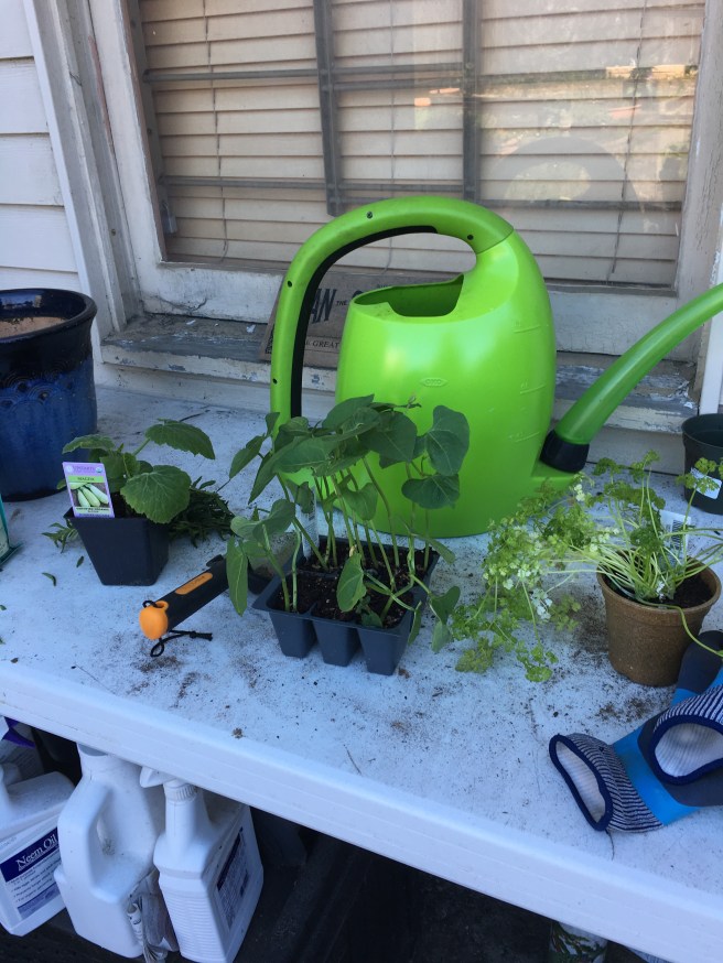 In the meantime, I have this little fellow playing back up. So what if he doesn’t hold much water, he has the right tip and he doesn’t just barf water out like a plain spout does. I could blame the aphids for this latest clumsy mistake, but I think it’s just my complete inability to see where I’m stepping.