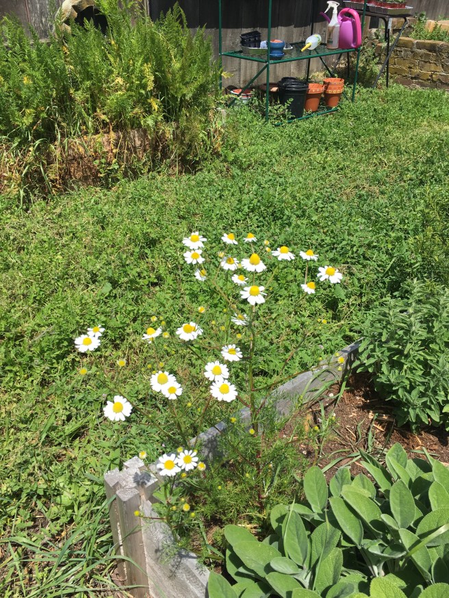 I’ll leave you with some magnificent chamomile ready for harvest. The ease with which I’ve grown this is pretty astonishing. Just put the plant in and away it went! I’m looking forward to tea.