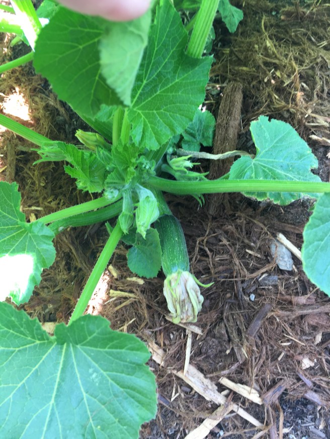 The monster squash is growing squash! We picked our first zucchini yesterday and there will be more in the coming days. I suspect much more.
