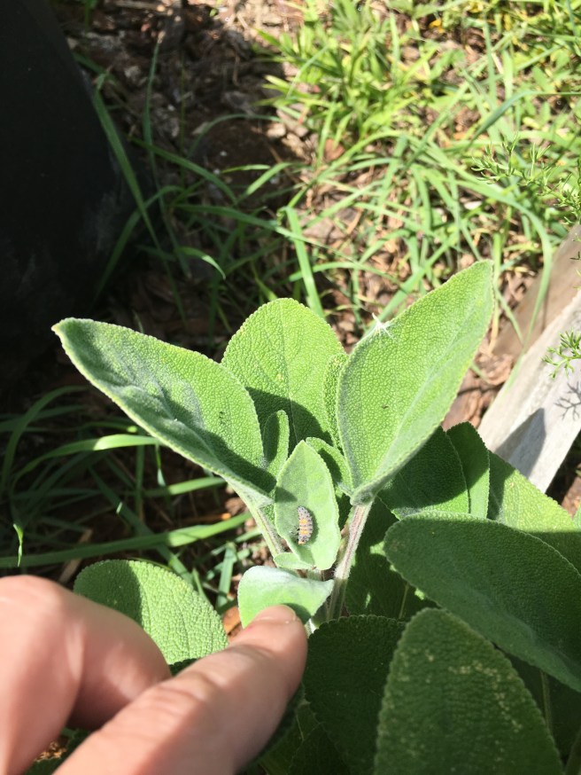 Aphids generally don’t attack sage, but other pests can, so go and be hungry my larvae friend!