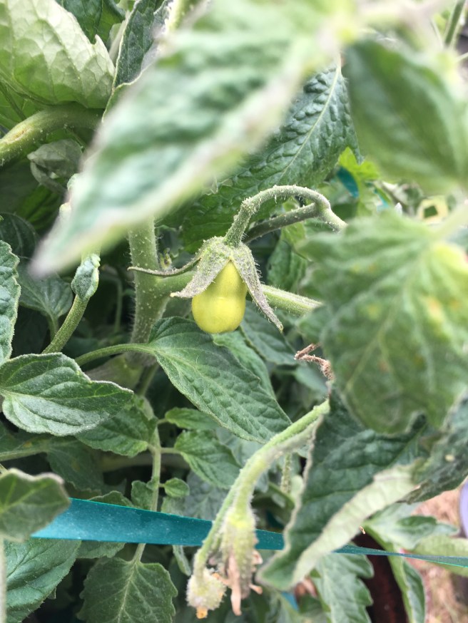 In tomato news, the first Roma of the sauce pot is growing. It’s a little baby plum tomato! The wet weather isn’t wonderful for the tomatoes but they seem to be surviving just fine. The sun gold still has its fair share of aphids, but it doesn’t seem to be bothering the plant- it’s really bothering me though.