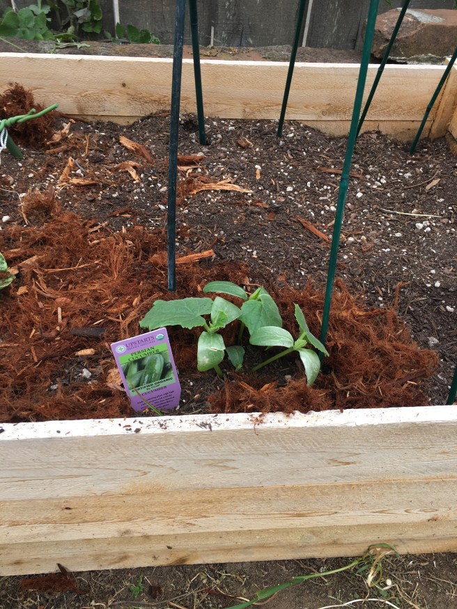 Here’s my pretty Persian cukes ready to climb up my stakes. As my other Boston pickle cucumbers starts get larger I’ll put them on the other sides.
