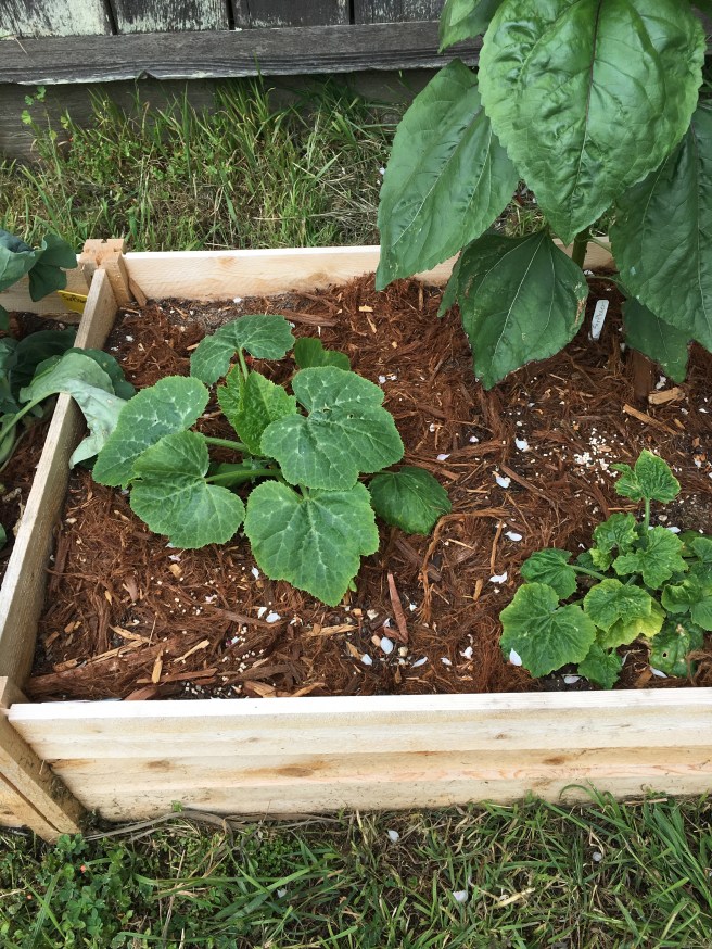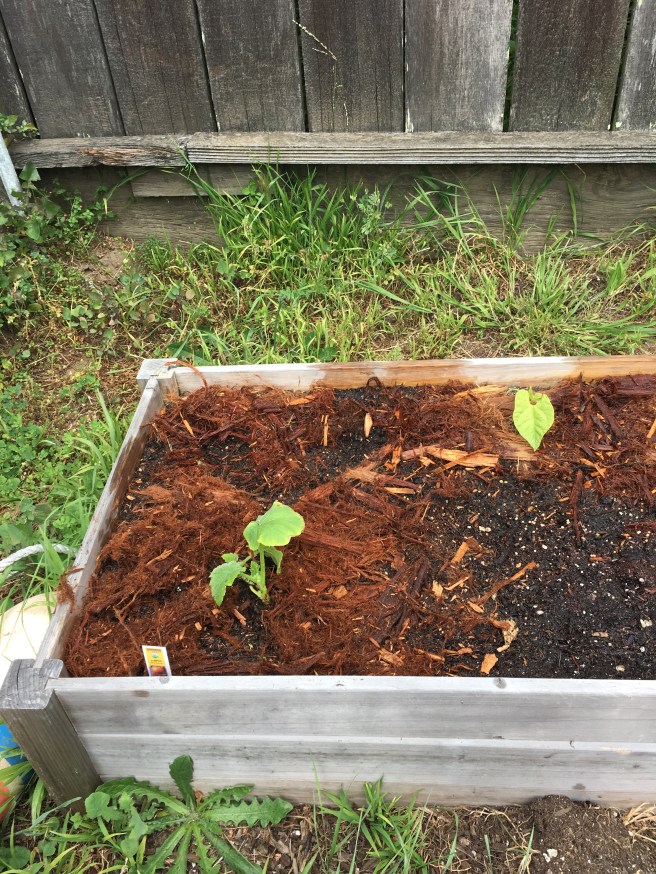 In the areas where the beans once were I put two new seeds down so I can have my late season Kentucky wonders. Growing squash and beans together is of course as old as indigenous America (all I’m missing is the corn) so I have high hopes for a few proper pumpkins come Halloween.