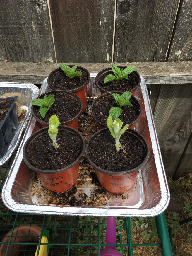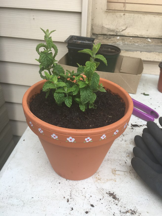 Here’s my new hopefuls- 2 more pineapple mint, and 4 lovely ginger mints from the new plant I put in.