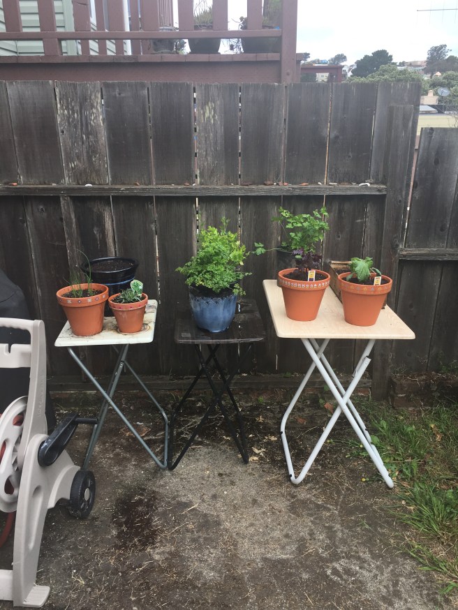 I’m not screwing around with the shiso. In my garden at least it has a tendency to get really buggy, and I’d like to have more for eating so pots it is! And the pots can go on the new herb tables!