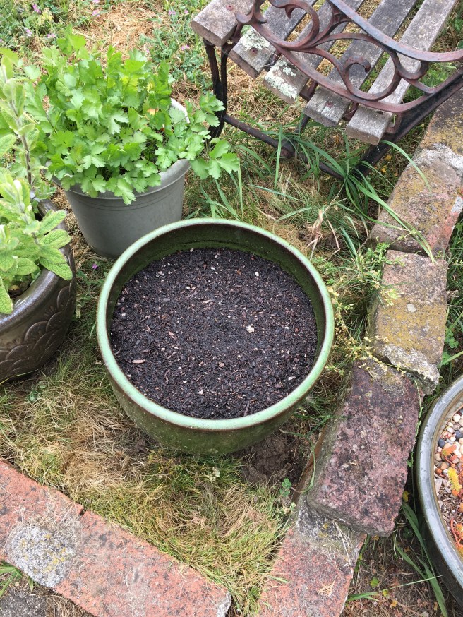 It’s a beautiful pot of dirt. Dill is a pain in the ass, as it doesn’t transplant well. So I can buy dill seedlings but unless I keep them in the original pot I won’t get much dill, as once transplanted it tends to swiftly die. Growing dill from seed isn’t difficult, but you have to tenderly press the seeds into the soil because they need light to germinate. Not to mention it tends to get really buggy, and it attracts scale insects and aphids. Like I said, a pain. But it will work, and I use a lot of dill when I pickle so I guess I’ll just have to keep re-seeding it.