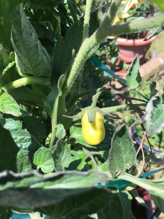 The cucumbers are soaking it up though. They are obediently growing vertically and soon I can train them up the tripod.