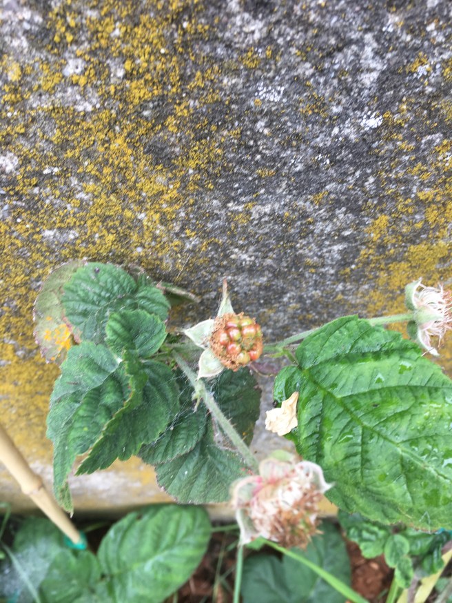 In other fantastic news- looks like I’m getting a blackberry! Not only are the blackberry plants growing like mad- I looks like the first flower I got is turning into an actual fruit! The smaller vine will probably not bear fruit until next year but it looks like the larger vine is going to bear this year.