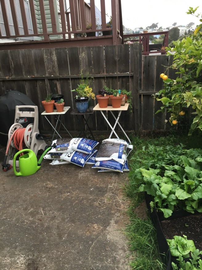 Got two late season tomatoes and a funny blueberry and an absolute crap-ton of herbs… and a freaking tree collard!