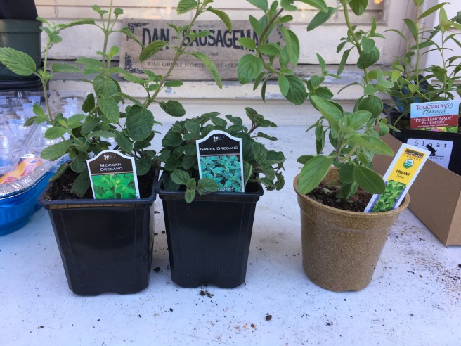 I got a marjoram, and three types of oregano to add to my extant Italian variety. Mexican oregano, Greek oregano, and the exquisite smelling Syrian oregano.