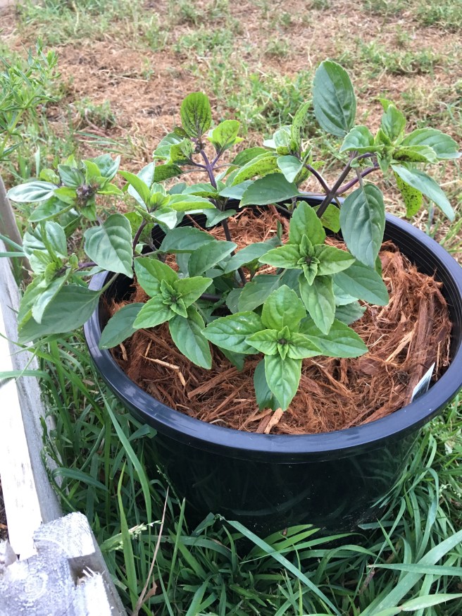 Both of my bush basils are growing great. So great I think I’m going to try and root cuttings from them.