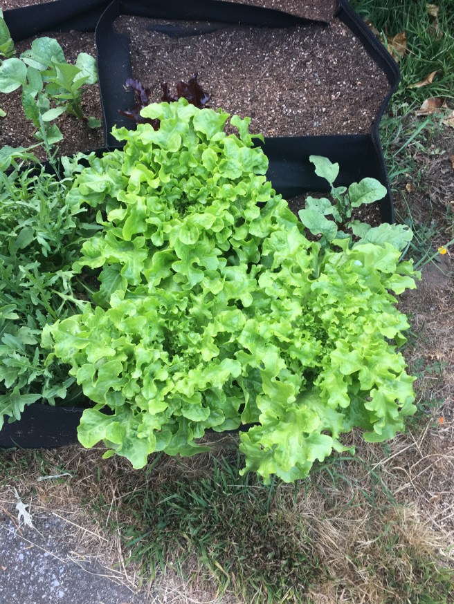 Oak leaf is a good choice for warmer climes as it doesn’t get that bitter in warmer weather. The seed packet I got was a mix of red and green oak leaf- and the one that turned up red has not been growing as well as the green. But that’s sometimes the case- red varieties of any vegetable don’t photosynthesize as well as their green counterparts.