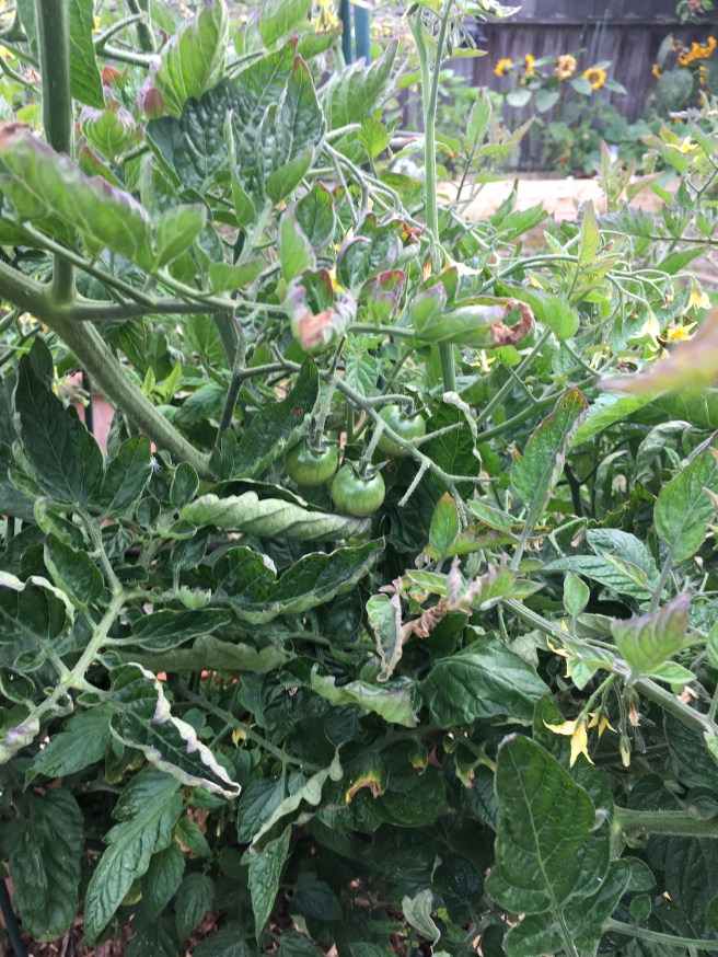 The sauce pot is a mess, don’t get me wrong- it was three Roma plants in one that I should have separated but I was afraid of damaging them… anyways three tomatoes in one pot is less than ideal but so far it seems to be ok.