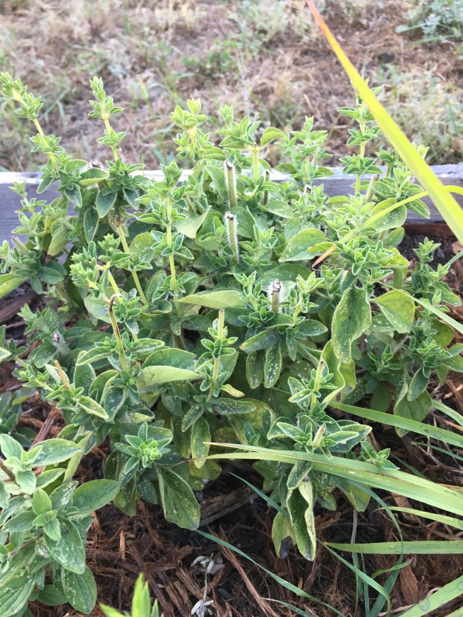 That won’t be hard. This is the Italian oregano. It’s woody and buggy and tasteless. Makes pretty flowers, but has almost no flavor or aroma. Seriously- Greek is the way. So I’ll pull this one to make room for my two new guys and hopefully with a little TLC at least one of my now three oregano plants will survive to flavor my imminent tomatoes.