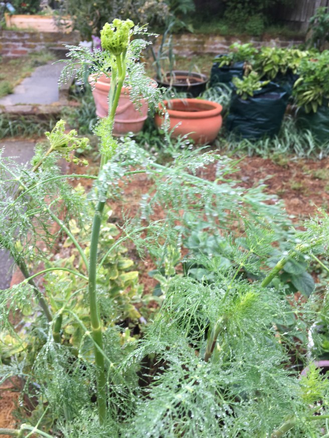 The dill is growing well, and can use the water. So far this dill plant has been fairly successful, so my bad streak of failed dill plants has finally ended.