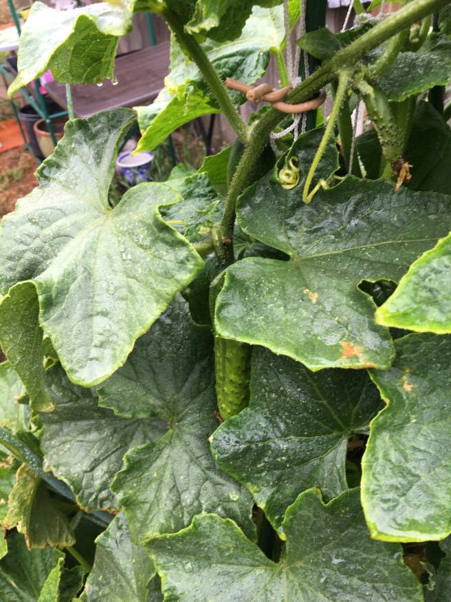 Cucumber’s are thirsty thirsty plants so while the dreaded powdery mildew might strike the leaves, the cucumbers themselves are probably thrilled. I see you little Boston pickle, you’ll get picked soon, wait your turn!