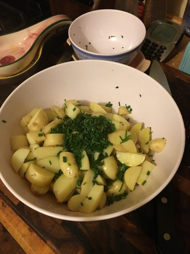 I just boiled the potatoes up and dressed them in olive oil and chives. Best dinner I’ve had in a while honestly.