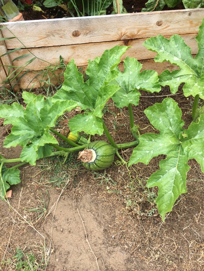 Pictured, one beautiful baby pumpkin that I hand fertilized, next to a shriveled up one that I did not.
