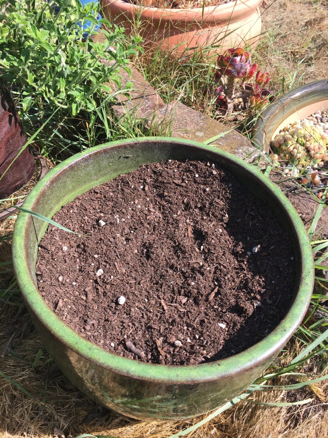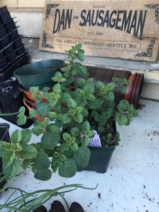 Unfortunately the logistics of my oregano is getting complicated. It should go in the sun herb bed where the sun herbs live- but something is wrong with that bed. I think the soil has gotten really compacted because it’s draining really poorly. It, along with my 4×4 shade herb bed is the oldest bed in my garden, and I think it needs to be dug out. I don’t want to lose most of the herbs in it though, so it would be a real project- I’d have to dig out all the herbs I want to keep and keep the root balls wet while I heavily tilled and amended the dirt… anyways so the oregano is going to stay in it’s pot for a while while I contemplate matters.