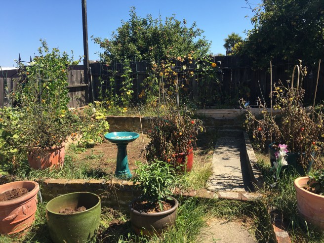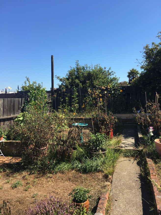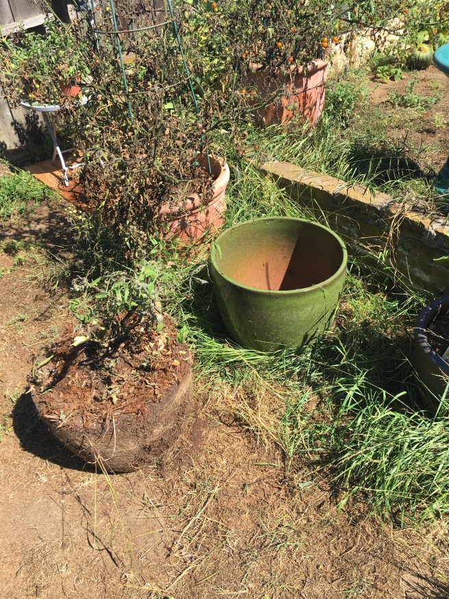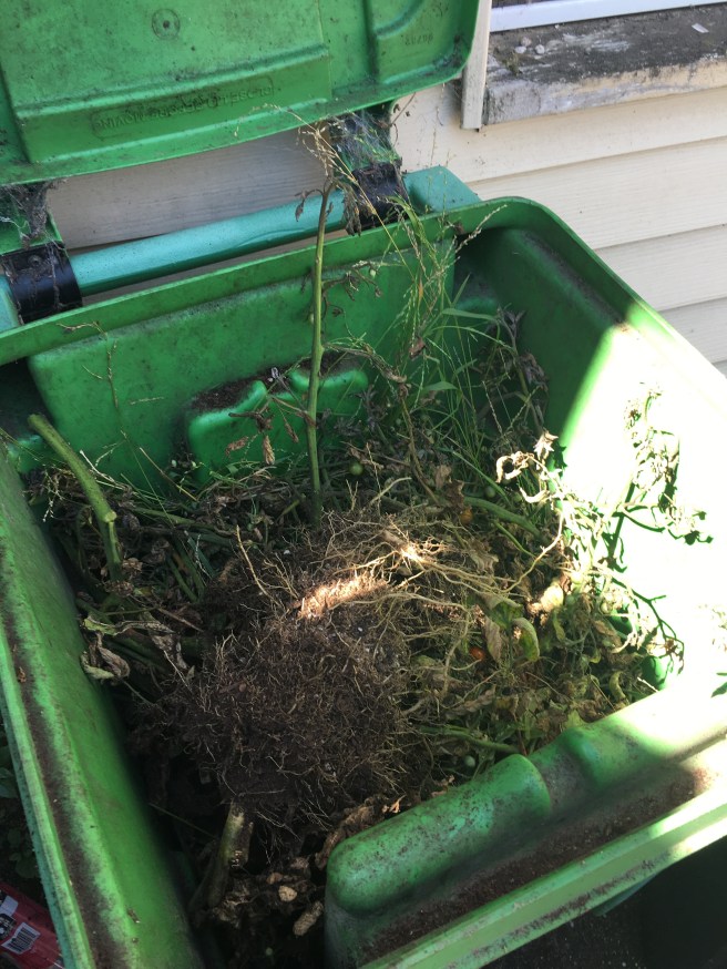 That’s a very full compost bin. I realized at this point I only had room for two dead tomatoes in my green can. So the tomato tear out has become a multi-week affair.
