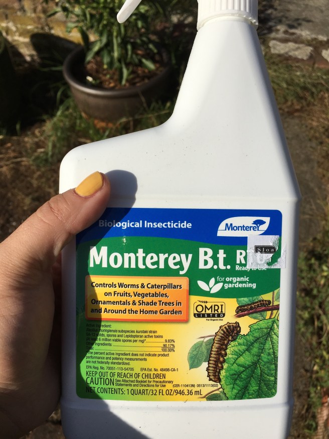 Well It’s a good thing I bought B.t. for the tree collard. Turns out I’m going to have to use it for the dang peppers too because life’s not fair and caterpillars suck.