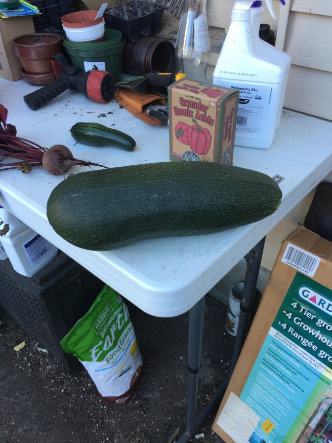 Good news is now that the monster has been slain picked, the rest of the squash should develop as normal, and I should be getting zucchini into at least October.